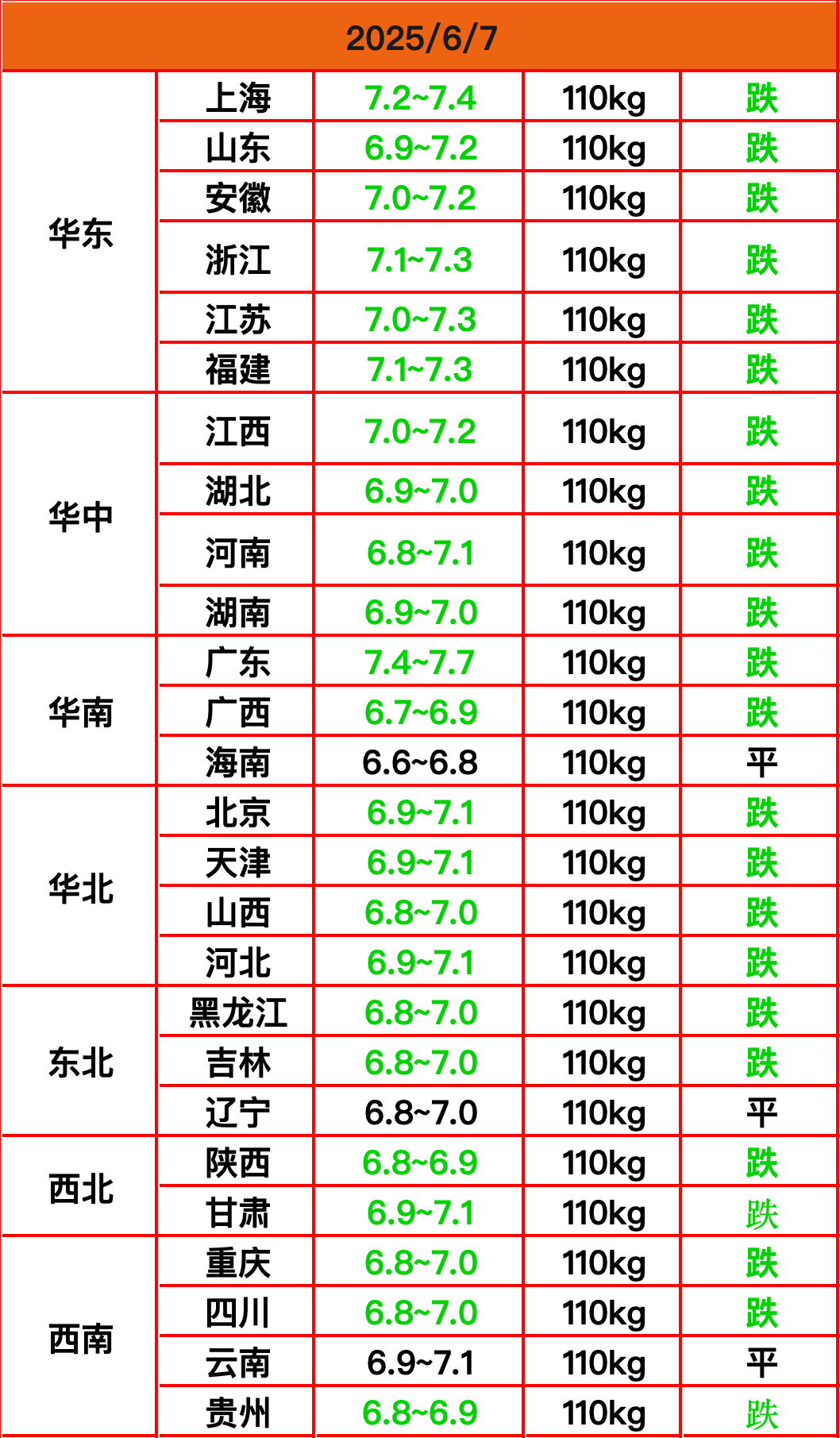 上涨的地区:在养殖供应端加速出栏之后,屠宰企业迅速开启猛烈压价,今天无一地上涨;
